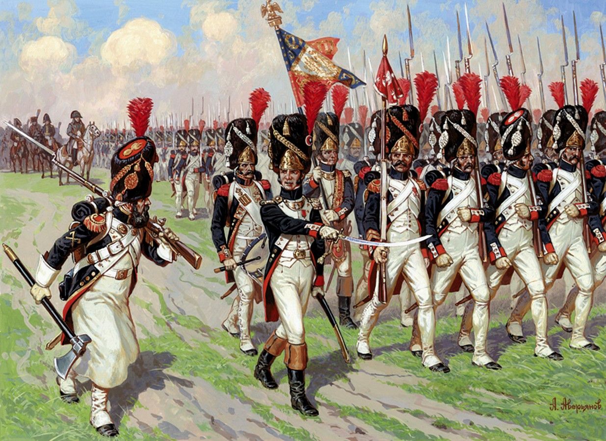 La deuxième Grande Armée fut créée officieusement à la fin de l'année 1811 (note de Berthier) en préambule à la campagne de Russie7. Sa composition est toutefois beaucoup moins homogène que la « Première » avec notamment l'intégration de très larges contingents étrangers et le recours de plus en plus régulier à la conscription pour compenser les pertes françaises. En 1813-1814, on assiste ainsi au gonflement considérable des effectifs de la Garde (environ 50 000 hommes en 1812, 90 000 en 1813, 110 000 en 1814). Cette inflation s'explique par la création, à côté des unités mises sur pied dans l'infanterie de ligne ou légère par l'incorporation des Marie-Louise, les jeunes conscrits qui combattent aux côtés des vieux grognards, de nouveaux régiments, notamment 19 régiments de voltigeurs et 19 régiments de tirailleurs, et par l'essor pris par la Jeune Garde, décisive lors des campagnes d'Allemagne en 1813 et de France en 1814. Elle combattit quasiment continuellement depuis le début de la campagne de Russie en juin 1812 jusqu'à la fin de la campagne de France en avril 1814.